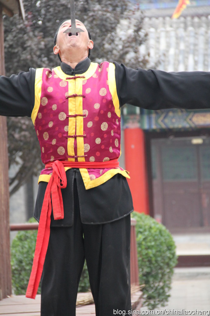 雜技人員正在吞劍。。。