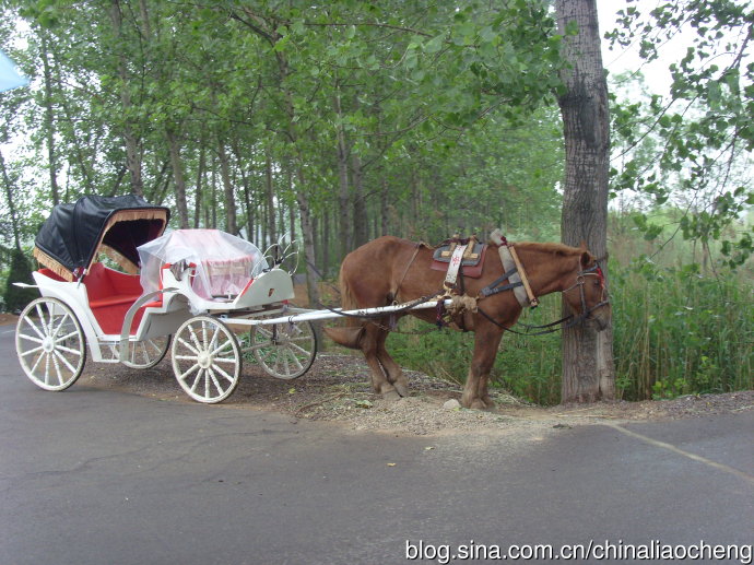 看,拉著小車的馬靠在樹干上,卻顯示不出它的勞累,反而給人一種溫順的感覺,讓人忍不住想去撫摸它。