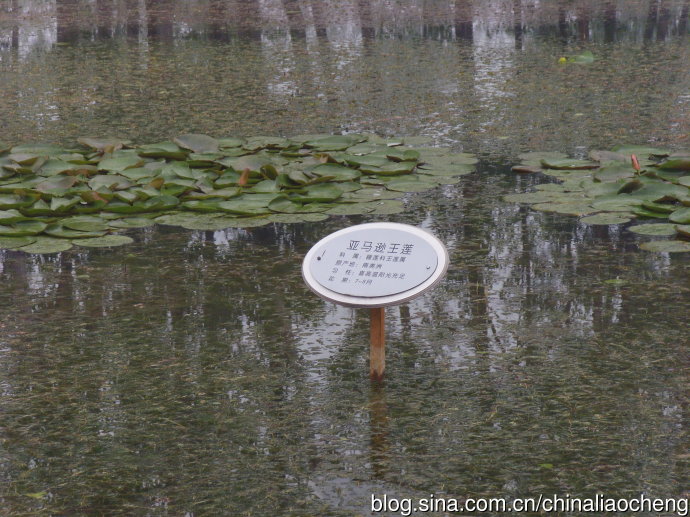 看,深綠的荷葉在湖水的托舉下,是多么的有層次,哇,走近一看,原來是亞馬遜王蓮