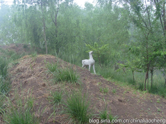 翠綠的樹叢中,一直石羊在山坡上昂首嘶鳴,好像是在呼喚著什么。讓人忍不住想跟隨它的眼光,向遠方去眺望。