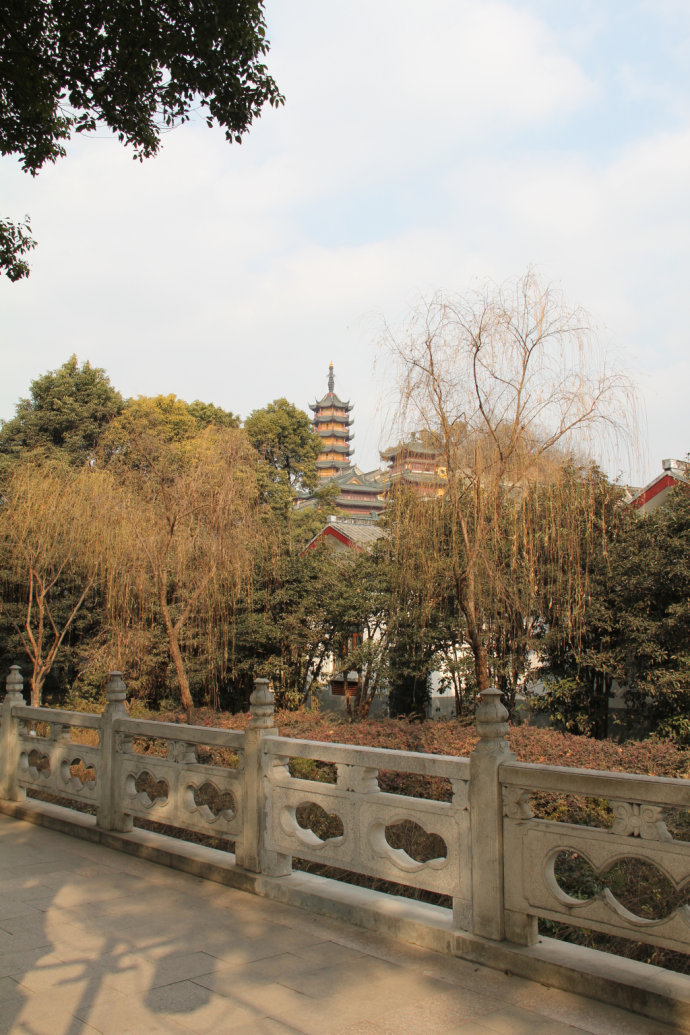 遠(yuǎn)遠(yuǎn)望去,一座古塔在對面遙望著我們