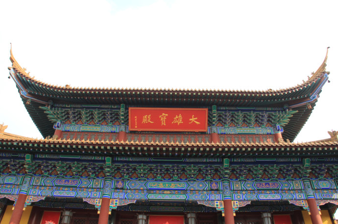 一座古樸的寺廟 一對莊嚴(yán)的獅子