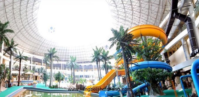 站在地面看這個溫泉游樂場,感覺好高好大啊。
