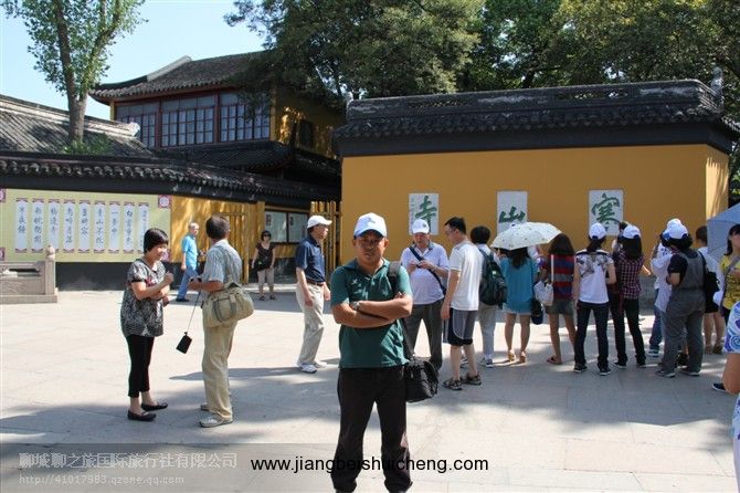 寒山寺(Hanshan Temple) 寒山寺在蘇州城西閶門外5公里外的楓橋鎮(zhèn),建于六朝時(shí)期的梁代天監(jiān)年間(公元502-519年),距今已有1400多年。原名“妙利普明塔院”。唐代貞觀年間,傳說(shuō)當(dāng)時(shí)的名僧寒山和拾得曾由天臺(tái)山來(lái)此住持,改名寒山寺。今天我們的導(dǎo)游就帶大家來(lái)到了蘇州,看一下寒山寺。