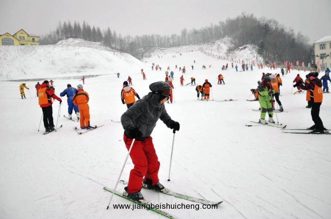 導(dǎo)游很熱情地給我推薦了教練,是一個(gè)二十多歲,面相柔和的少年。我也是青春年少,正當(dāng)年,看著教練有點(diǎn)小帥的臉,頓時(shí)浮想聯(lián)翩起來。尤其是當(dāng)教練幫我穿好一切裝備時(shí),我感覺我的臉好像都紅了一些。唉,滑雪場(chǎng)真是戀愛者的天堂,在這里,一切肢體接觸都是愛的關(guān)懷,不但不會(huì)挨耳光,運(yùn)氣好,還會(huì)得到女友感激的香吻,真不錯(cuò),不錯(cuò)呀!我還打算繼續(xù)胡思亂想,但是,教練沒有給我機(jī)會(huì)。他不停地給我講訴著滑雪時(shí)應(yīng)該注意的問題,還囑咐我千萬不要高估自己的能力,貿(mào)然行事;也要盡量避免和別人相撞,如果情況緊急,應(yīng)迅速降低重心,向后坐,不要隨意掙扎。。。一刻鐘后,我終于要開始滑行了。但是雪靴又重又硬,腳穿在里面一點(diǎn)也不可以彎曲,我抱著雪撬、拿著雪杖好不容易才挪到了可以滑雪的好位置。但剛一出腳,就摔了個(gè)狗吃屎,教練沒有笑我,輕輕扶我起來,說,開始滑行前,身體要往前傾,雙腳與肩同寬并平行,雙手握住雪杖傾斜著往身后推,先慢慢地在平坡上滑行,找到感覺后,再加速。另外,要停下來時(shí),就把滑雪板成“八”字形,這樣不易摔倒。我按照教練說的,循序漸進(jìn),不急不躁地滑動(dòng)起來,雖然一開始還是會(huì)不斷摔倒,但是漸漸地我就掌握住了要領(lǐng),即使不能快速滑行,也算是可以獨(dú)立一人支撐了。我欣喜于自己的進(jìn)步,為了犒勞自己,便卸下重重的殼,買了一些當(dāng)?shù)靥禺a(chǎn),麻辣燙、煎餅什么的,坐在場(chǎng)地邊緣,欣賞起別的滑雪者來。