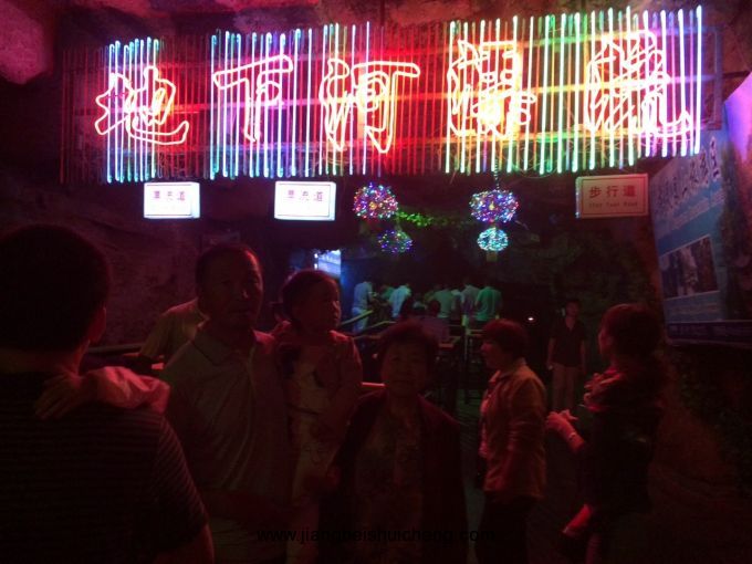 第二天游覽地下大峽谷,地下大峽谷最出名的游玩項(xiàng)目當(dāng)屬地下漂流。地下河漂流項(xiàng)目經(jīng)過(guò)改造,漂流長(zhǎng)度由原來(lái)的723米延長(zhǎng)到1000米。該項(xiàng)目已經(jīng)得到上海大世界吉尼斯記錄總部的認(rèn)證,被譽(yù)為中國(guó)最長(zhǎng)的溶洞漂流項(xiàng)目[。漂流道的改造設(shè)計(jì)充分體現(xiàn)了溶洞內(nèi)的幽深莫測(cè),起伏高下,波激浪涌,抑揚(yáng)頓挫的特點(diǎn)和恐龍模型的陣陣吼聲,將地下河漂流的原生野始,驚險(xiǎn)刺激演繹的淋漓盡致。