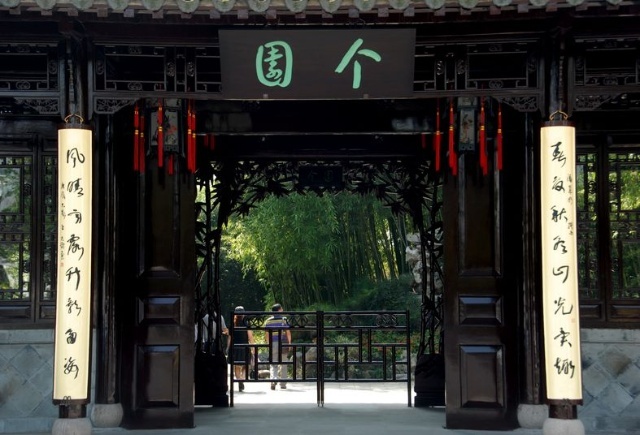 個園是以竹石取勝,連園名中的“個”字,也是取了竹字的半邊,應(yīng)合了庭園里各色竹子,主人的情趣和心智都在里面了。個園的取名也因為這里竹子的每三片竹葉都可以形成“個”字。