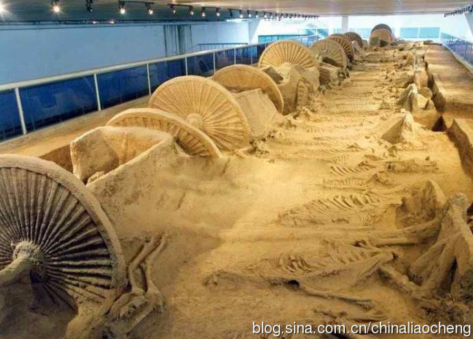 春秋殉馬坑殉戰(zhàn)車10輛,馬32匹版權(quán)所有聊城聊之旅國(guó)際旅行社有限公司,轉(zhuǎn)載必究!,規(guī)模之大,配套之齊全,馬飾之精美,為當(dāng)代中國(guó)之冠,列中國(guó)十大考古發(fā)現(xiàn)之一。古車陳列展廳陳列后李車馬坑出土的各類車和臨淄地區(qū)出土的古代車的復(fù)原車,直至中國(guó)出土的各類古代車復(fù)原車。集中國(guó)古車研究成果之大成,薈華夏歷代車乘珍品之精萃,充分展示了中國(guó)車乘的悠久歷史和造車技術(shù)曾在世界車輛發(fā)展史上的領(lǐng)先地位。