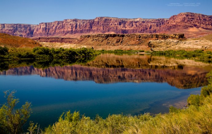 億萬年來,奔騰的科羅拉多河從美國西部亞利桑那洲北部的堪帕布高原中,切割出這令人震撼的奇跡——科羅拉多大峽谷,只要登高遠望,就可以清楚看到坦如桌面的高原上的一道大裂痕,那就是科羅拉多河在這片洪荒大地上的印記。