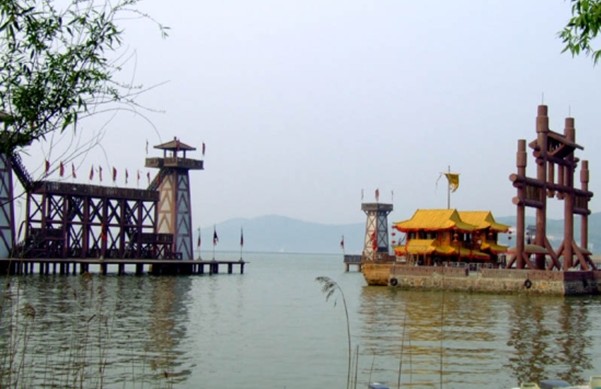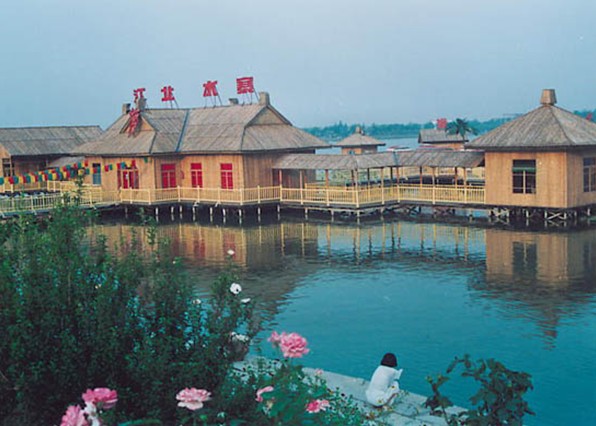 江北水寨位于聊城古城西側(cè),中國垂釣基地南面,整個水寨采用竹木結(jié)構(gòu),保留本色,全部建筑浮于湖水碧波之上,總建筑面積640余平方米。
