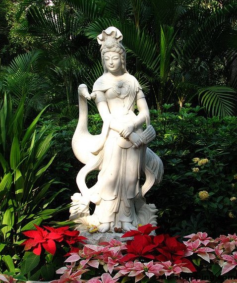 從正門進(jìn)入公園,是一座書有“屏山鏡樓”四個(gè)大字的古色古香的圓形拱門,兩旁是長(zhǎng)滿鮮花和翠竹的林蔭小道,參天的榕樹、成片的竹林、盛開(kāi)的鮮花掩映著樓臺(tái)亭閣、曲徑回廊、池塘橋榭、流水飛瀑 、假山怪石。園內(nèi)景點(diǎn)分布得當(dāng),景色錯(cuò)落有致。假山堆成的奇峰怪石玲瓏剔透、崢嶸百態(tài),涓涓流水從假山頂部跌落 ,形成五疊瀑布,水流又注入假山腳下的小池塘,一位用巨石壘成的古代美女玉立池中,池邊垂柳依依,池內(nèi)水明如鏡,白蓮搖曳,成群的非洲鯽魚游來(lái)游去,圓圓的荷葉和橫跨其上呈弧狀彎曲的九曲橋相映成趣。