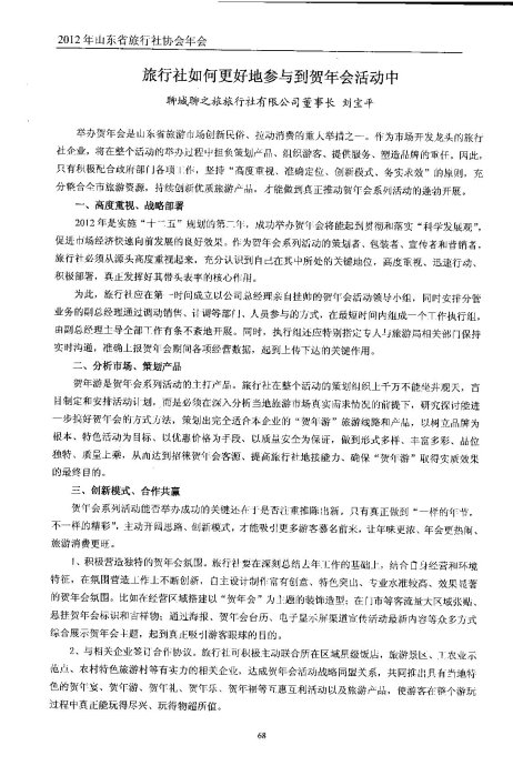 山東省旅行社協(xié)會會刊發(fā)表劉寶平董事長文章《旅行社如何更好地參與到賀年會活動中》