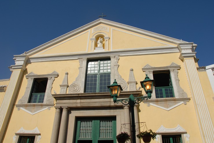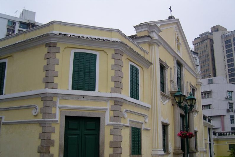 圣奧斯定教堂,1591年由西班牙奧斯定會(huì)修士創(chuàng)建。教堂最初建筑非常簡(jiǎn)陋,教士們便用蒲葵葉覆蓋屋頂來(lái)遮擋風(fēng)雨;每當(dāng)大風(fēng)吹來(lái),蒲葵葉便隨風(fēng)飛揚(yáng),華人遠(yuǎn)遠(yuǎn)望去,覺(jué)得這情景像龍須豎起,就稱教堂作“龍須廟”,后又以粵音轉(zhuǎn)稱“龍嵩廟”。教堂于1874年重修后,形成今天的規(guī)模。該教堂每年為期兩天的苦難耶穌像巡游,有四百多年的歷史,是澳門(mén)天主教會(huì)重要的節(jié)日活動(dòng)之一。2005年作為澳門(mén)歷史城區(qū)的部分被列入世界文化遺產(chǎn)名錄內(nèi)。