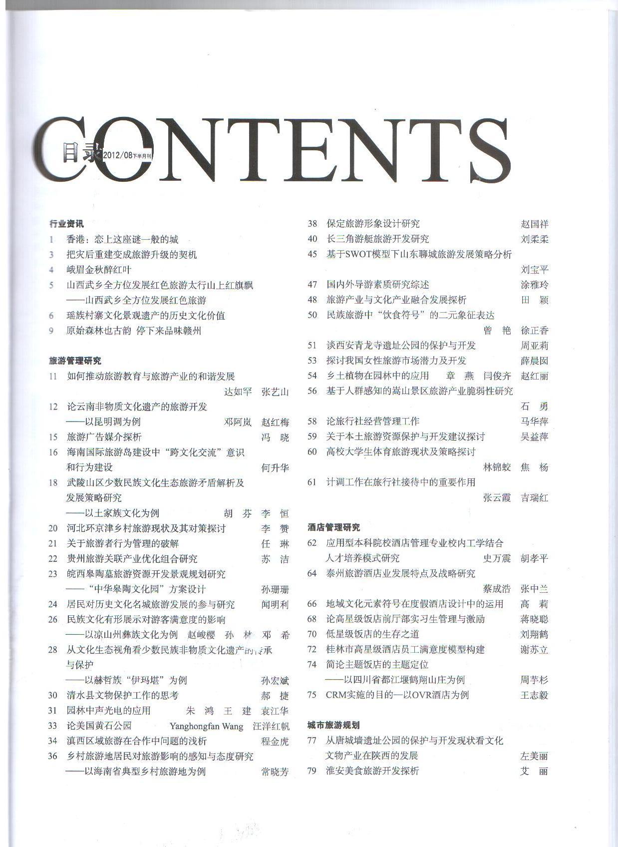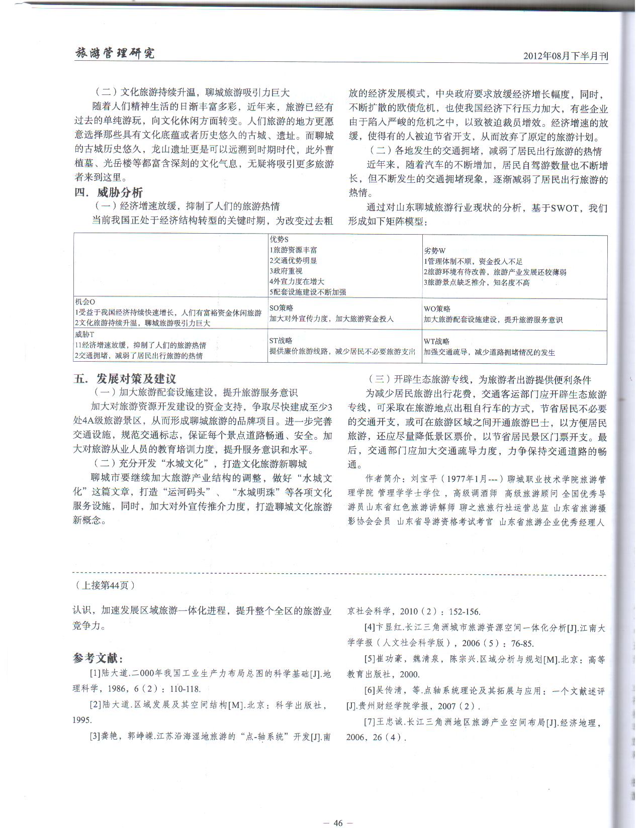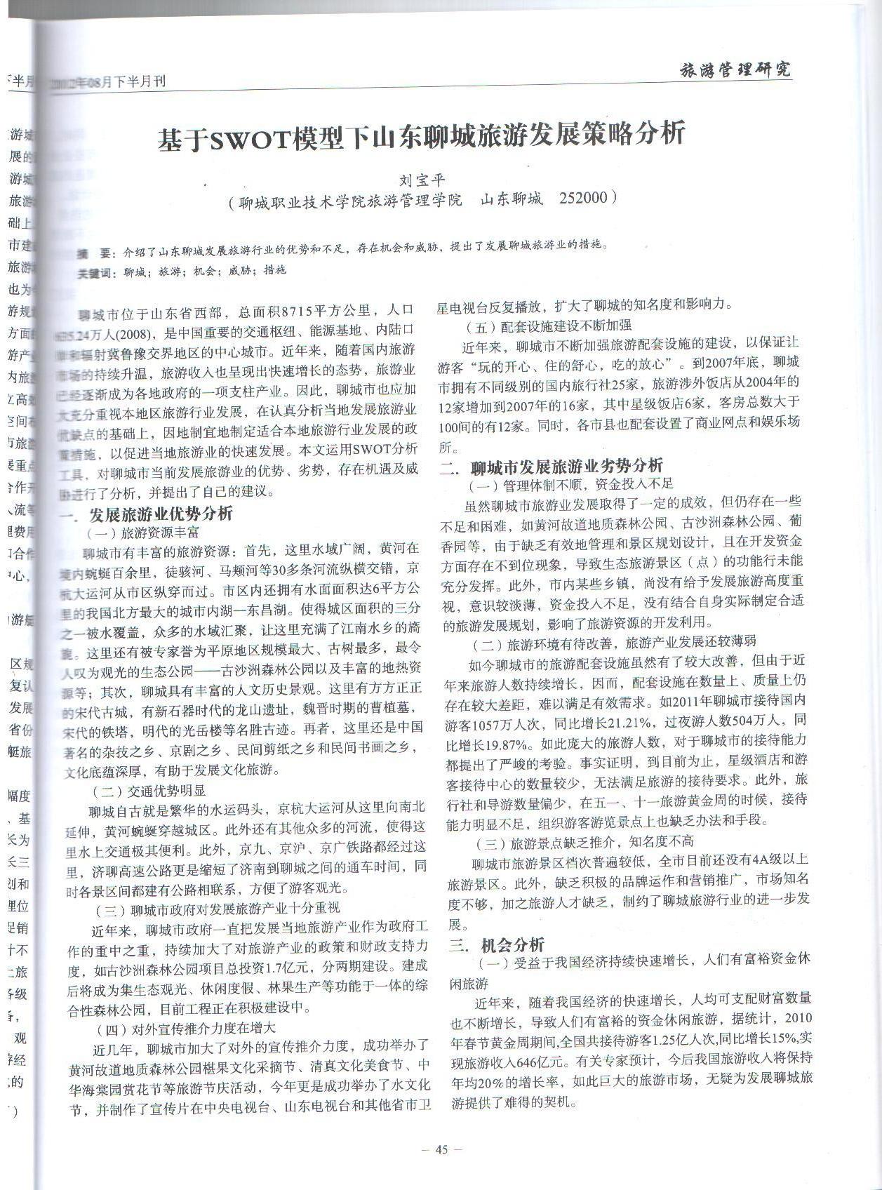 《旅游縱覽》(國(guó)家級(jí))發(fā)表劉寶平文章《基于SWOT模型下山東聊城旅游發(fā)展策略分析》刊登在2012年8月版。