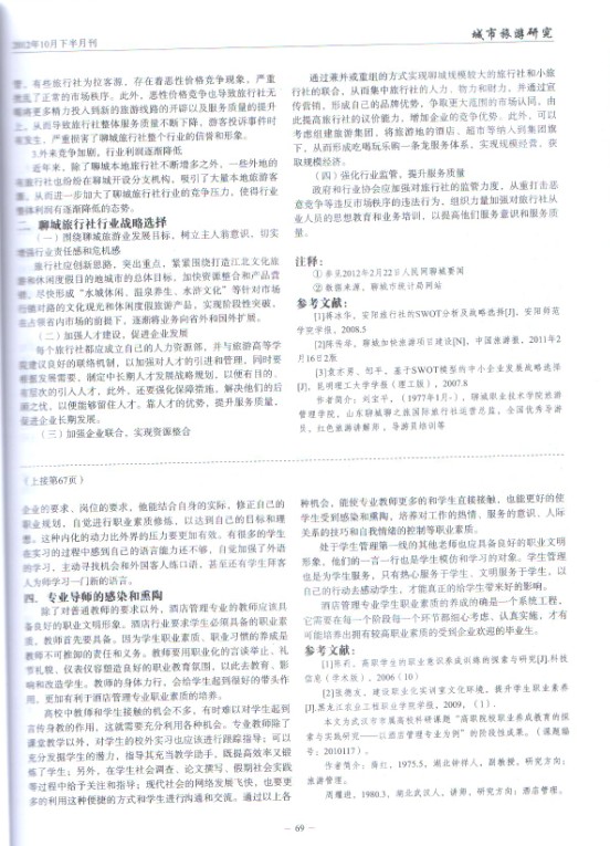 家級期刊《旅游縱覽》發(fā)表劉寶平文章《聊城市旅行社行業(yè)發(fā)展SWOT分析》