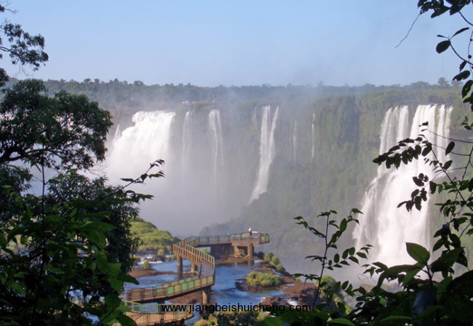 據(jù)說(shuō)只有在巴西的那一側(cè)才可看清伊瓜蘇大瀑布的真面目,從阿根廷國(guó)家公園可直接乘坐小車到達(dá)巴西的瀑布公園,從這邊可以看到,對(duì)面的阿根廷國(guó)家公園整個(gè)是一座瀑布山,寬一千米以上,無(wú)比壯觀。