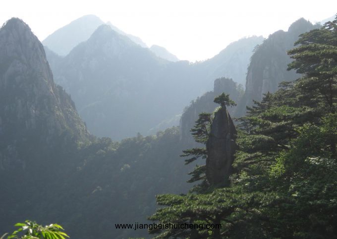 傳說,有年春天,詩人李白來到黃山,見到北海山峰競秀,景色奇美,禁不住詩興大發(fā),便昂首向天,高聲吟道:“黃山四千仞,三十二蓮峰;丹崖夾石柱,菡萏金芙蓉。……”這聲音驚動了獅子林禪院的長老。他走出山門,細細一看,只見一位白衣秀士,風度瀟灑,便上前施禮,請問尊姓大名。