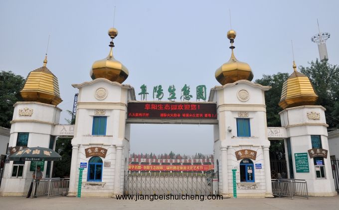 阜陽生態(tài)園坐落在阜城西北城鄉(xiāng)結(jié)合部,古潁州西湖遺址,歐陽修“會老堂”北側(cè),系農(nóng)業(yè)結(jié)構(gòu)調(diào)整,改造治理泉河洼地而建。景區(qū)占地1107畝,一期工程2001年7月動工,2002年5月1日開園;二期工程2003年3月開始擴(kuò)建,2004年5月1日對外開放。