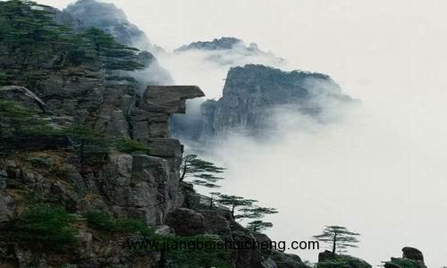 在石筍與仙人峰間的溝壑中,有一塊巨石,下部似一蒲團(tuán),上部似一人直立。從玉屏樓(或天都峰)向北遠(yuǎn)眺,但見(jiàn)他身上衣帶隨風(fēng)而起,流灑飄逸.四周云海翻騰時(shí),似人立蒲團(tuán)浮在云上,狀若飄洋過(guò)海,版權(quán)所有,山東聊城聊之旅國(guó)際旅行社有限公司,轉(zhuǎn)載必究!故被喻為傳說(shuō)中的“仙人以海游蓬萊”。今人有詩(shī)記日:“浮云涌處山環(huán)水,頑石乘風(fēng)浪里飄。遙望天涯何處是,不如黃海看秋潮?!?