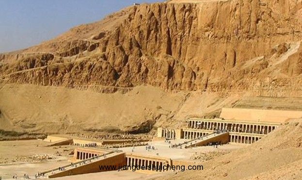 女王陵位于尼羅河西岸,它是古埃及女王哈特舍普蘇特為了自己和她的父親,請建筑設(shè)計師森穆建立的陵墓。女王陵地處于山谷中,早先曾經(jīng)是為牛神建造神殿的地方,后改址建別處,這個地區(qū)則被建筑設(shè)計師選用,并且巧妙地利用了向四周擴展的巖壁,使女王陵依山而建,與山一體,外形新奇,在建筑史上有革命性的意義。