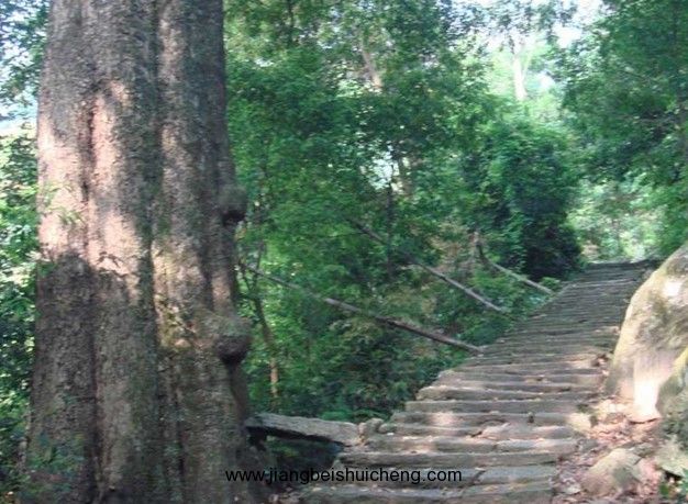 寶劍 、死后的化身(石佛) 、楊八妹帶來的漫天大霧 等等。傳說流傳很廣,但并非史實。所以形成這些傳說是因為古道歷經(jīng)世故,飽受滄桑,給人留下了許多神秘的地方,而這些傳說也成為人們到三千八百坎游覽的一種登山探奇的動力。三千八百坎沿途景色隨著登山高度的變化而不同,或石壁陡峭、或深谷懸崖;山澗小溪忽在道旁潺潺低唱,忽而在斷崖前跌落為瀑布;那遠近山中不時傳出的鳥叫聲和那宛囀不絕的蟬鳴更給十里古道增添了幽靜、深遠的感覺。登上三千八百坎,舉目四顧,但見風煙俱靜,天山共色,頓覺心胸開闊、神清氣爽。遠處可見建溪、富屯溪二水繚繞南平城,閩江蜿蜒如帶下福州??岔攦勺筋^之間有座古堡緊扼交通要道,此為古代兵家必爭之地。古堡外有七株千年水杉,即使遠在15公里外的南平城內(nèi),人們也可清楚地看到它們挺拔入云的雄姿。三千八百坎吸引了許多游客,他們總是要用自已的腳步去證實它是否名符其實的3800坎,結(jié)果也總是大惑不解:明擺著的五千多,為何偏叫三千八?在距坎頂357級的路旁立有一塊石碑,三千八百坎為何成為五千余級的緣由就在該碑的題字中。十年動亂時期,該碑被砸成十數(shù)塊* ,散落于草叢中,有的被搬去鋪路、砌灶。最近,南平市文物部門發(fā)動當?shù)厝罕妼ふ覛埰占饋斫?jīng)過拼合修整,基本恢復原狀立于舊址。