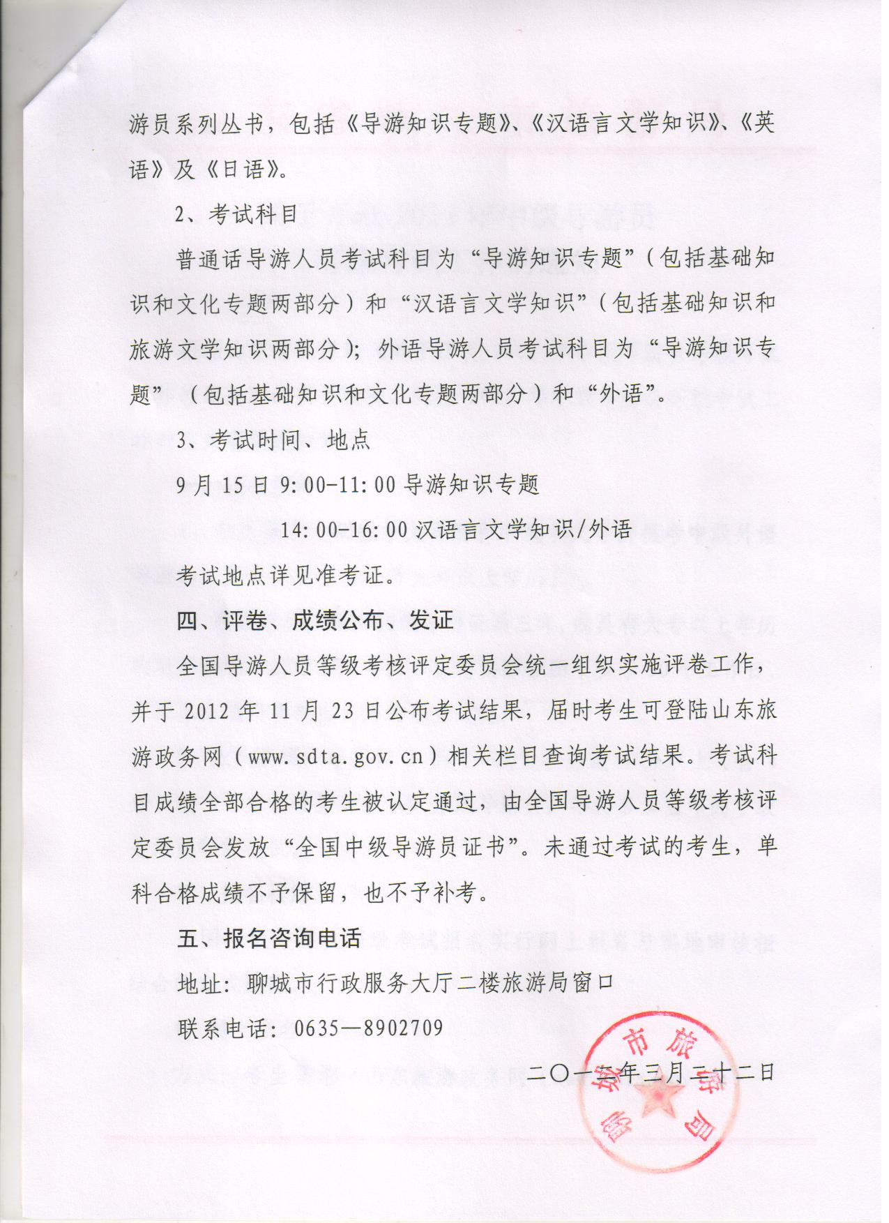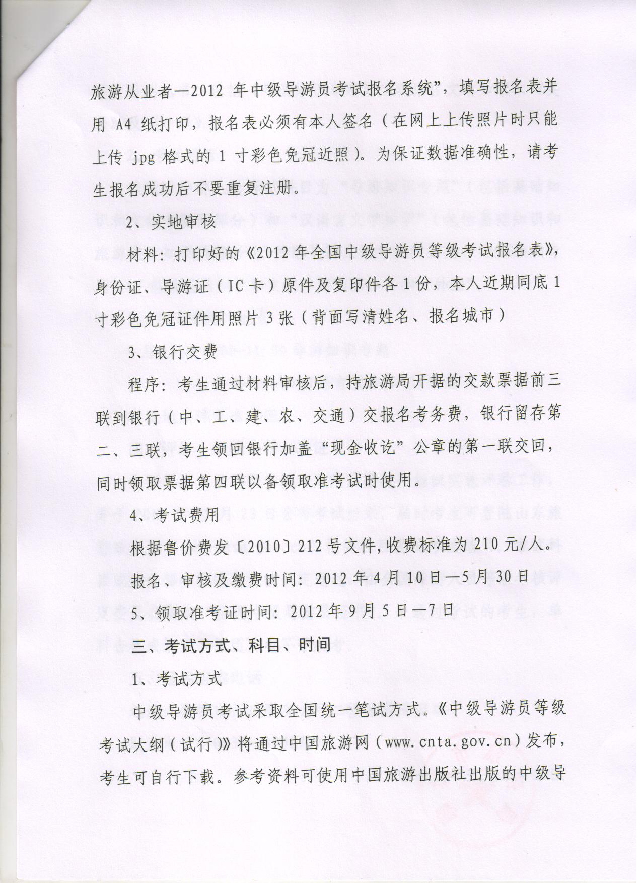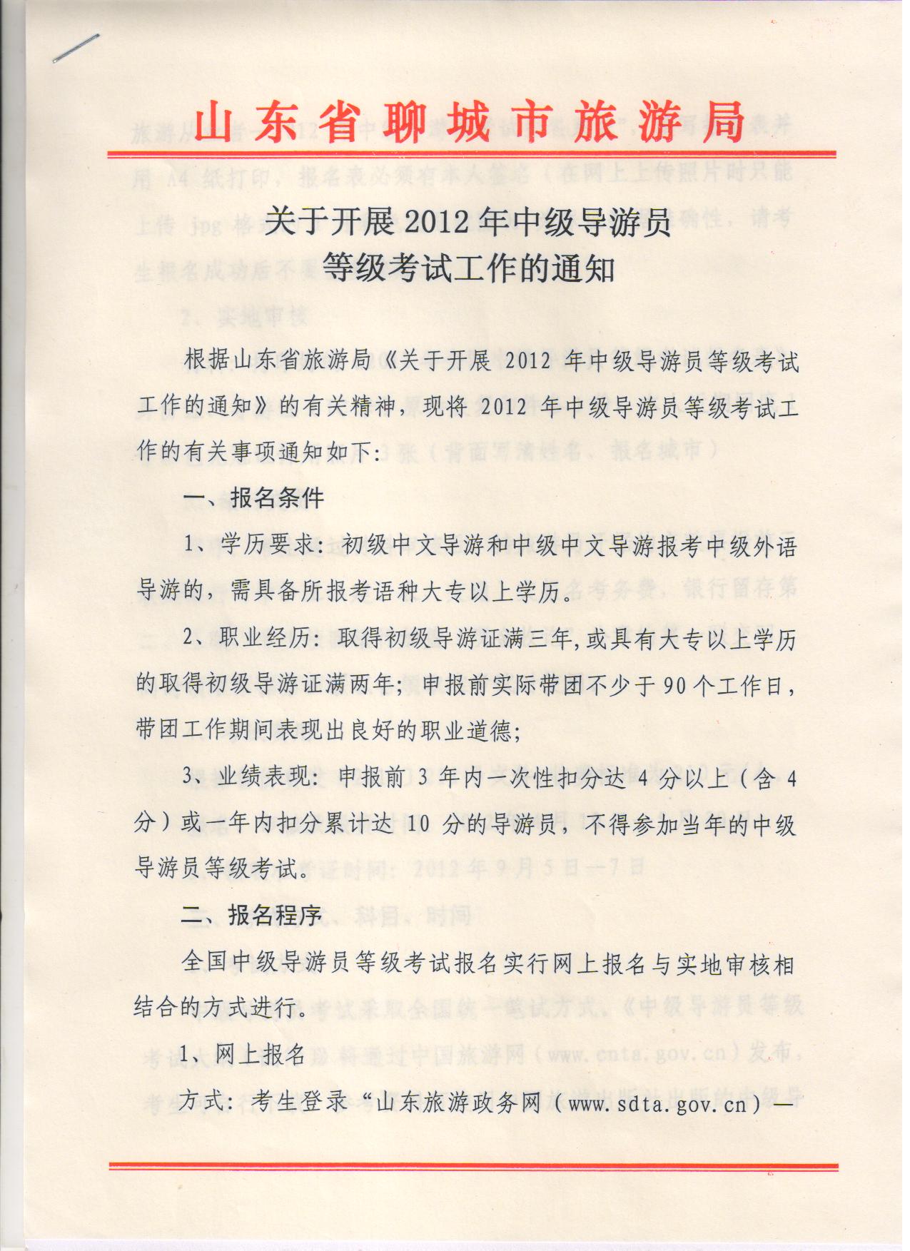 2012年中級(jí)導(dǎo)游員等級(jí)考試通知