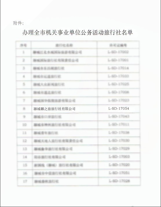 【網(wǎng)宣部】熱烈祝賀聊城聊之旅旅行社有限公司成為聊城市機關(guān)事業(yè)單位公務(wù)活動旅行社!