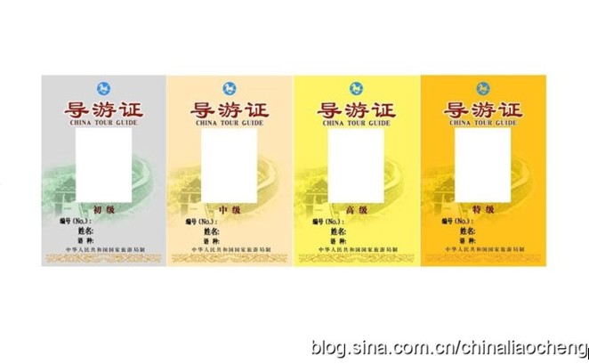 四、導游證正面設置中英文對照的導游證(CHINA TOUR GUIDE)、導游證編號、導游等級等項目,并在中部貼持證人近期免冠2寸正面照片,背面設置持證人姓名、性別、身份證號碼、導游資格(等級)證書號碼、語種、服務旅行社、發(fā)證機關(鋼印、發(fā)證日期和有效期限三年等項目?! ∨R時導游證正面用不易為公眾看出的字體寫有"臨時"二字,無導游等級和導游資格(等級)證書號碼,背面增設工作單位項目,有效期限為三個月,其余同導游證?! ?/p>