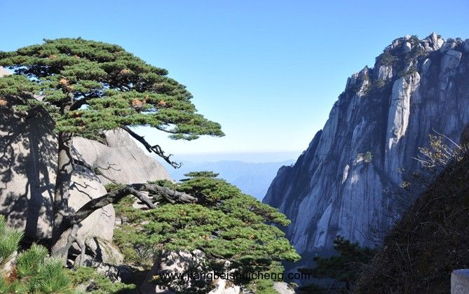 黃山位于安徽省黃山市西北風(fēng)景秀麗的皖南山區(qū),向以“三奇”、“四絕”名冠于世,其 劈地摩天的奇峰、玲瓏剔透的怪石、變化無(wú)常的云海、千奇百怪的蒼松,構(gòu)成了無(wú)窮無(wú)盡的 神奇美景。黃山一九九零年被列入“世界遺產(chǎn)(文化和自然)”名錄。