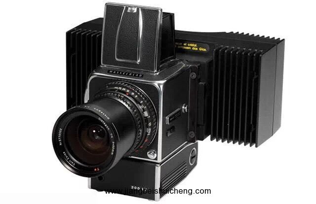 圖中這臺安置在一臺 Hasselblad 500EL 相機(jī)上。可拍攝黑白照片,或者通過鏡頭前固定的機(jī)械化過濾器轉(zhuǎn)輪分別用紅、綠、藍(lán)色三片濾鏡曝光后再合成一幅全彩照片。