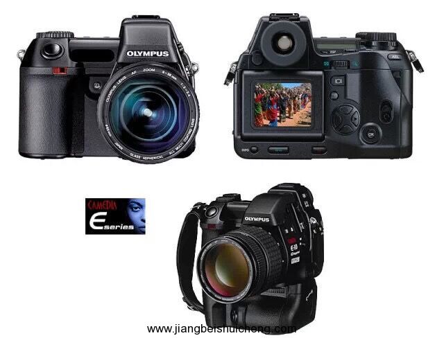 奧林巴斯 E-10 是第一臺配備 LCD 實時取景的數(shù)碼單反相機(jī)。E-10 相機(jī)沒有配備傳統(tǒng)單反的反光鏡,取而代之的是一套光線分離器,來源光線通過它既可被反射到光學(xué)取景器上也可直接被感光元件所捕捉到。這樣的設(shè)計可使 CCD 上的圖像實時地呈現(xiàn)在 LCD 顯示屏上。