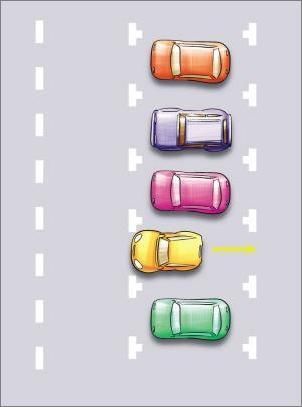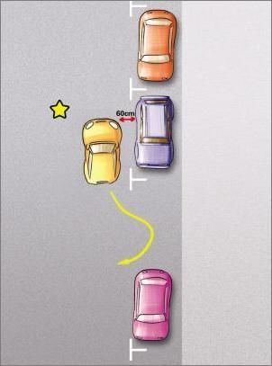 4、保持自己的車與前車間距60厘米左右并調(diào)到平齊位置