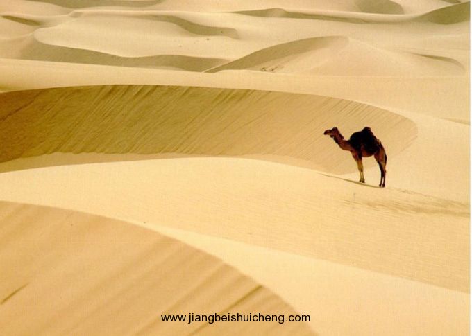 一只駱駝在沙漠里跋涉著。正午的太陽像一個(gè)大火球曬得它又餓又渴,焦躁萬分,一肚子火不知道該往哪兒發(fā)才好。