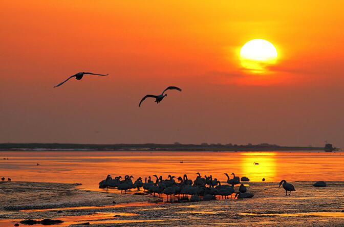 拍攝煙墩角日出,天鵝,宿成山鎮(zhèn)