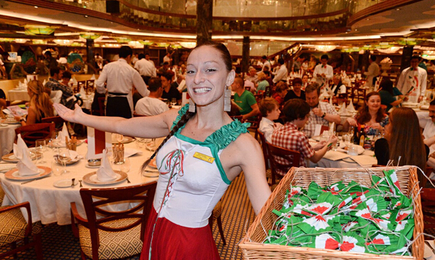 4、希望在客艙內(nèi)享用歐式早餐的游客,可在就寢前填寫點(diǎn)菜單并將其掛于門外把手。這項服務(wù)將按點(diǎn)菜單指定的時間免費(fèi)提供。特殊早餐(僅在特定的船上)如果你想要在客艙內(nèi)享用一頓為特殊情況準(zhǔn)備的早餐,你可以在多種新鮮水果和果汁中進(jìn)行選擇,一頓浪漫的由紅玫瑰點(diǎn)綴的早餐,帶有魚子醬,大馬哈魚,以及香檳!特殊早餐將由您的歌詩達(dá)卡付費(fèi)。