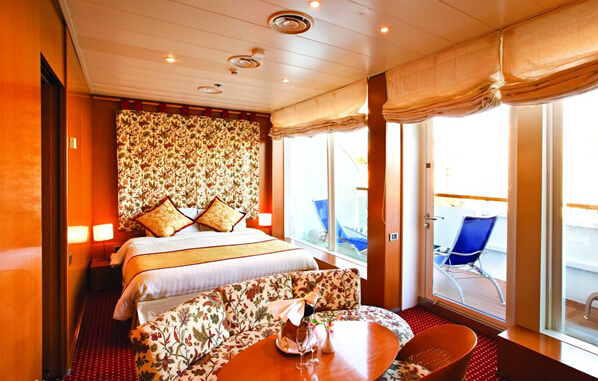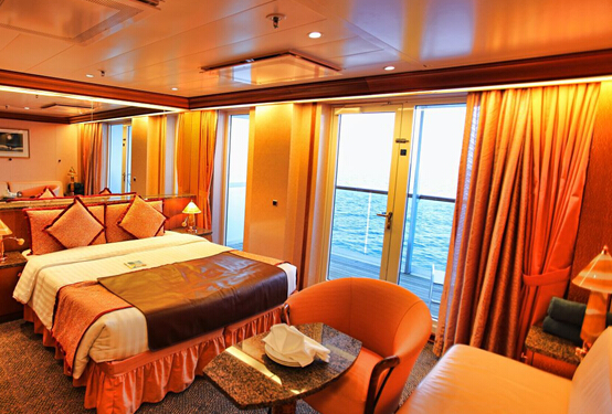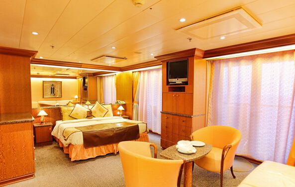 3、船上有一定數(shù)量的單人客艙,其價格扣除了一部分關(guān)稅。在某些船上有一定數(shù)量的雙人客艙,如支付差額,可用于單人。您在預(yù)定時,請核對可用性與價格。套房特惠除與所有客艙享有相同的服務(wù)和特色外,迷你套房和套房中的游客還享有如下特別優(yōu)惠:優(yōu)先登船-仆役服務(wù)-每天供應(yīng)新鮮水果-套房內(nèi)享用午餐和晚餐(應(yīng)要求)-極可意浴缸-浴衣和拖鞋-應(yīng)邀參加船長的高級雞尾酒會-可在點(diǎn)菜餐廳優(yōu)先預(yù)訂席位-可由仆役服務(wù)預(yù)約觀光活動(命運(yùn)女神號與維多利亞號上的迷你套房僅有淋?。?。
