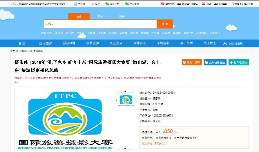 山東聊城聊之旅國際旅行社有限公司發(fā)布的攝影旅游專項產(chǎn)品。