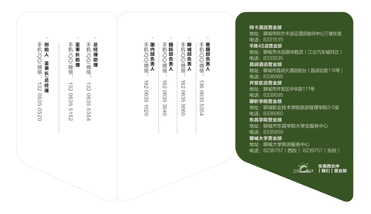 電話:0635-8333000 8336000 8339000 傳真:0635-8336665 地址:山東省聊城市東昌府區(qū)興華東路7號 郵編:252000 官方網(wǎng)站:www.shmsh.cn 歡迎致電全國統(tǒng)一(免長途)熱線:400 0635 369 國內(nèi)旅游請按1 國際旅游請按2 聊城旅游請按3 票務(wù)會議租車請按4 人工請按0 版權(quán)所有:Copyright(C) 劉寶平工作室_Mr.Liu Stu 聊城市旅游攝影協(xié)會 「我們」? 商會丨俱樂部丨實業(yè)公司 山東聊城聊之旅國際旅行社有限公司