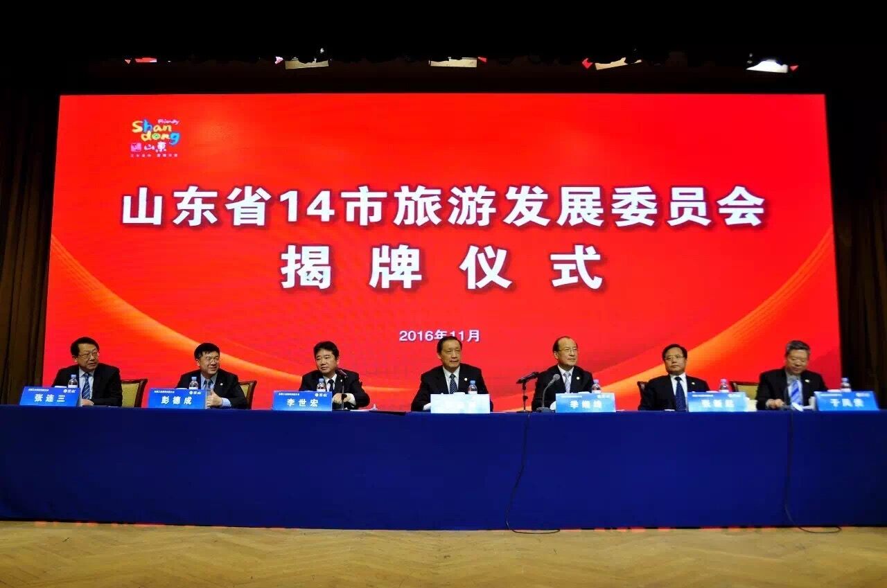 11月28日,山東省14市旅游發(fā)展委員會揭牌儀式在青島舉行。國家旅游局局長李金早出席儀式。山東省人民政府副省長季緗綺、國家旅游局副局長李世宏出席并致辭。青島市人民政府市長張新起、國家旅游局規(guī)劃財(cái)務(wù)司司長彭德成、山東省人民政府辦公廳副巡視員張連三參加儀式。山東省旅游發(fā)展委員會主任于風(fēng)貴主持儀式。