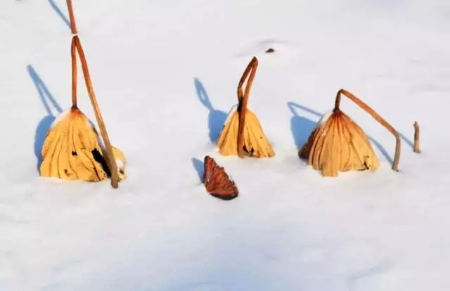 殘荷的拍攝時(shí)間很長(zhǎng),幾乎整個(gè)秋冬季節(jié)都可以拍,不同的時(shí)間,殘荷在消逝過(guò)程中有不同的形態(tài)。