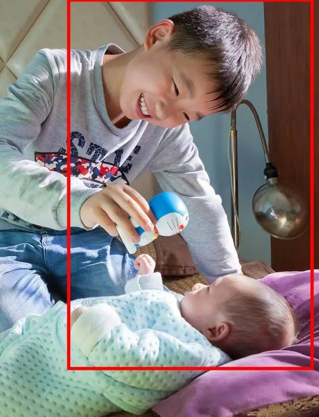 點(diǎn)評(píng):一大一小、一臥一坐、一動(dòng)一靜形成對(duì)比,反射光作為補(bǔ)光打到哥哥臉上,使畫面很生動(dòng)。但整個(gè)畫面構(gòu)圖隨意,如果想突出哥哥,可以稍作裁剪。