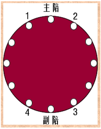 恭敬主賓(男女主賓分別緊靠女主人和男主人)