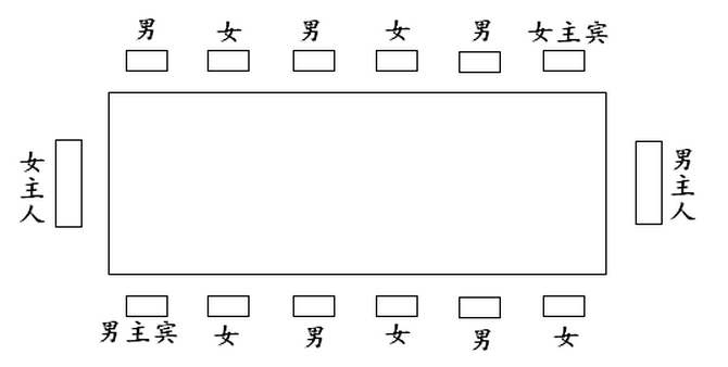 以右為尊(男主賓坐于女主人右側(cè),女主賓坐于男主人右側(cè))