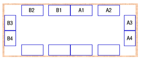 當A為上級領(lǐng)導(dǎo)或外賓席,B為主方席。