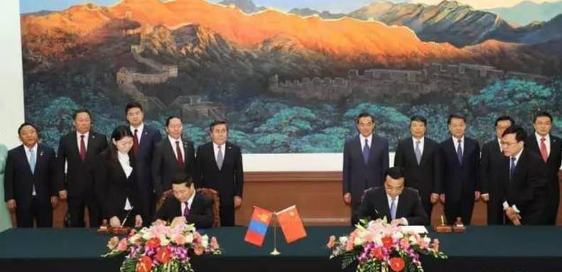 2013年10月25日,中國國務(wù)院總理李克強同蒙古國總理阿勒坦呼亞格在北京人民大會堂共同簽署《中蒙戰(zhàn)略伙伴關(guān)系中長期發(fā)展綱要》。