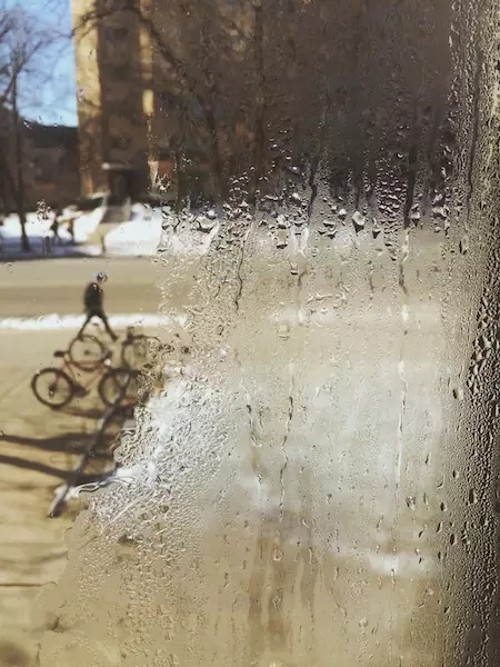 在這張照片中,對(duì)焦點(diǎn)就在玻璃上,這樣背景中的人物就處于焦外了。