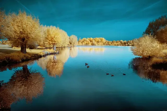 見山尋測光的目的就是利用陽光的低照度,使場景富有層次和立體感,以避免畫面平平,缺乏沖擊力。見水拍倒影也是攝影人常用的手法之一,特別是在風(fēng)和日麗、無風(fēng)無雨的情況下,水面就像一面鏡子,利用當(dāng)時的場景就可以拍出更具有詩情畫意的倒影作品了。