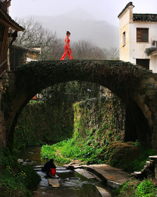 查濟(jì)古村可以看見(jiàn)的似乎只是陳舊破碎的景象,農(nóng)婦在溪水中洗衣,犬寵在巷中慢走,然而,昔日的繁華卻變成今日平靜的農(nóng)居生活。