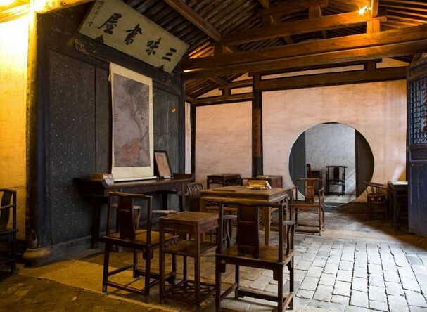三味書屋是晚清紹興府城內(nèi)著名私塾,也是魯迅12歲至17歲求學(xué)的地方,位于都昌坊口11號(hào)。塾師壽鏡吾(晚署鏡湖),是一位方正、質(zhì)樸和博學(xué)的人。他的為人和治學(xué)精神,給魯迅留下難忘的印象。壽鏡吾在這里坐館教書達(dá)60年,從房屋建筑到室內(nèi)陳設(shè)以至周圍環(huán)境,基本保持當(dāng)年原面貌。三味書屋是三開(kāi)間的小花廳,本是壽家的書房。坐東朝西,北臨小河,與周家老臺(tái)門隔河相望。