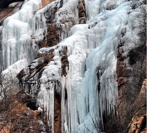 從北九水景區(qū)看到,未始潭、無隅潭等背風(fēng)的水面都結(jié)了接近1厘米的薄冰,許多落葉被冰凍在晶瑩剔透的冰面里,如同一塊大琥珀。通往蔚竹庵一個20多米高的瀑布已經(jīng)沒有了瀑布流淌的水聲,潔白的瀑布凝固在懸崖上,被定格成壯觀的冰瀑。隨著太陽逐漸升高,開始融化的冰瀑在流水的浸泡下顯得更加晶瑩剔透。許多游客被眼前的壯觀景象所吸引,紛紛拿起相機拍照留念。據(jù)介紹,北九水素有小關(guān)東之稱,雖然距離市區(qū)非常近,但結(jié)冰期要比山下長得多,觀賞冰瀑的時間至少能持續(xù)到明年2月中旬。
